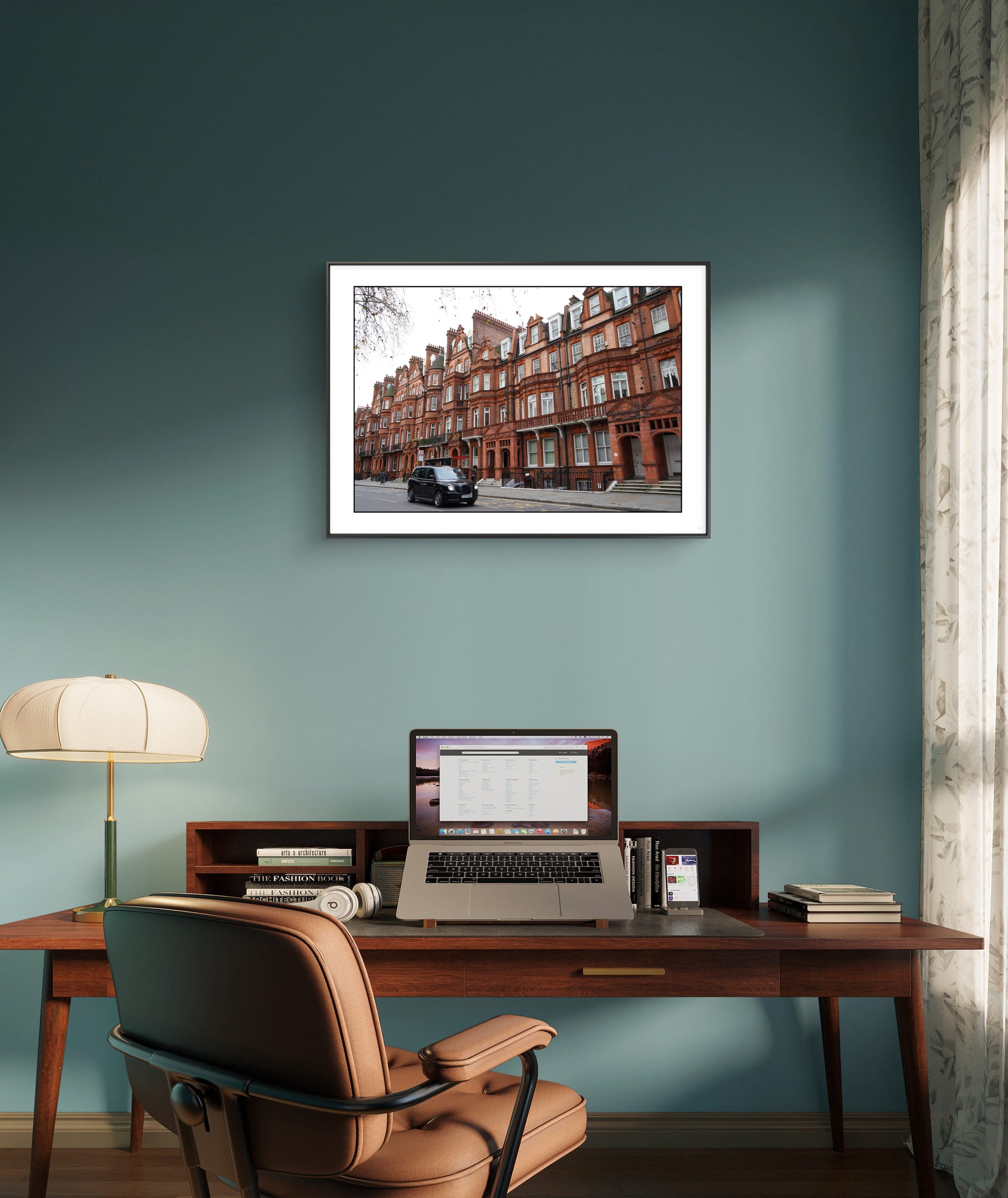 Lámina fotográfica que muestra las casas victorianas del barrio londinense de Knighstbridge
